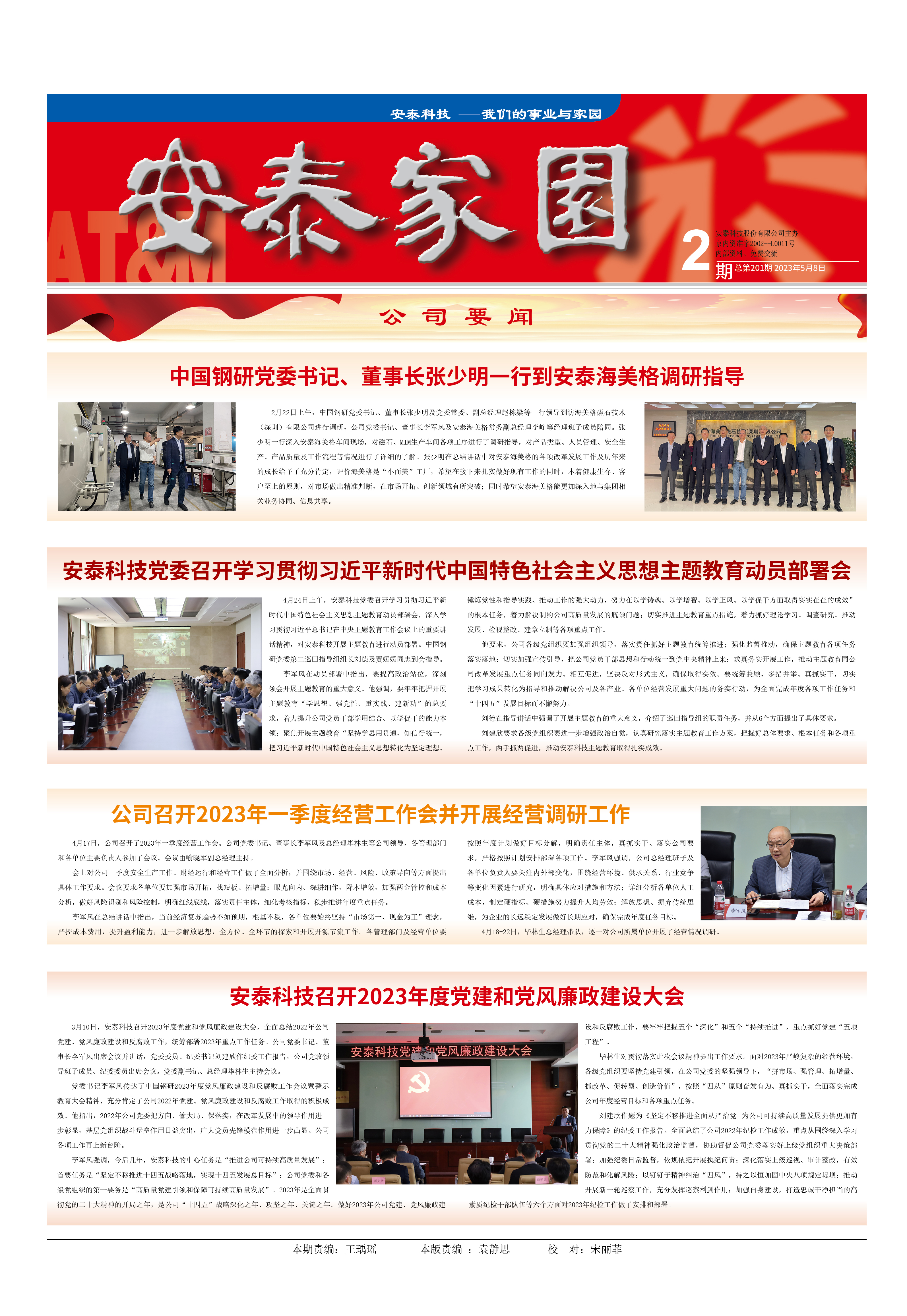 2月22日上午,中國鋼研黨委書記、董事長張少明及黨委常委、副總經(jīng)理趙棟梁等一行領(lǐng)導(dǎo)到訪海美格磁石技術(shù)(深圳)有限公司進(jìn)行調(diào)研,公司黨委書記、董事長李軍風(fēng)及安泰海美格常務(wù)副總經(jīng)理李崢等經(jīng)理班子成員陪同。張少明一行深入安泰海美格車間現(xiàn)場,對磁石、MIM生產(chǎn)車間各項(xiàng)工序進(jìn)行了調(diào)研指導(dǎo),對產(chǎn)品類型、人員管理、安全生產(chǎn)、產(chǎn)品質(zhì)量及工作流程等情況進(jìn)行了詳細(xì)的了解。張少明在總結(jié)講話中對安泰海美格的各項(xiàng)改革發(fā)展工作及歷年來的成長給予了充分肯定,評價海美格是“小而美”工廠,希望在接下來扎實(shí)做好現(xiàn)有工作的同時,本著健康生存、客戶至上的原則,對市場做出精準(zhǔn)判斷,在市場開拓、創(chuàng)新領(lǐng)域有所突破;同時希望安泰海美格能更加深入地與集團(tuán)相關(guān)業(yè)務(wù)協(xié)同、信息共享。